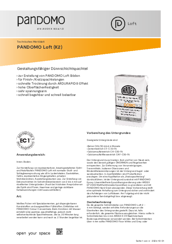 PANDOMO kann auf festen, rissfreien Oberflächen angewendet werden. Bei den Bodenprodukten eignen sich besonders Estriche von ARDEX als Untergrund, oder Hohlböden, z.B. von Lindner. Eine Anwendung über vorhandenen Fliesen ist aber auch möglich. Auch Gipskartonwände, wedi-Platten, Arbeitsplatten, dreidimensionale Objekte, Möbel oder Türen können mit PANDOMO Spachtelmassen eine individuelle Oberfläche bekommen. Beim diffusionsoffenen Kalk-Lehmputz PANDOMO Clay ist auch eine Anwendung über Stampflehm sinnvoll. Falls Sie sich unsicher sind, ob PANDOMO für Ihr Projekt geeignet ist, sprechen Sie einfach Ihren PANDOMO Partnerbetrieb vor Ort an.