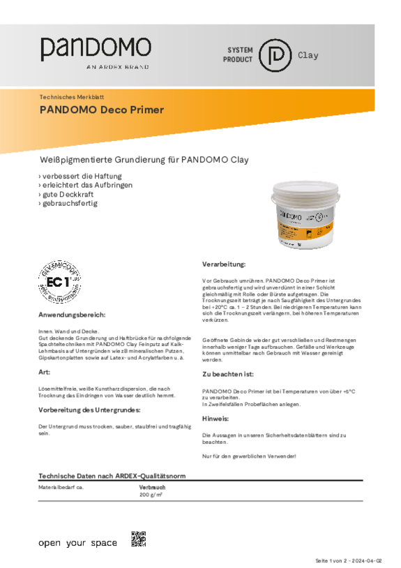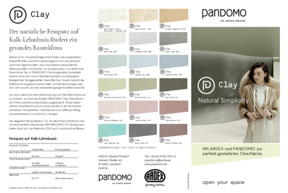 Für die Verarbeitung von PANDOMO Clay wenden Sie sich bitte an den Maler- oder Stuckateur-Fachbetrieb Ihrer Wahl.