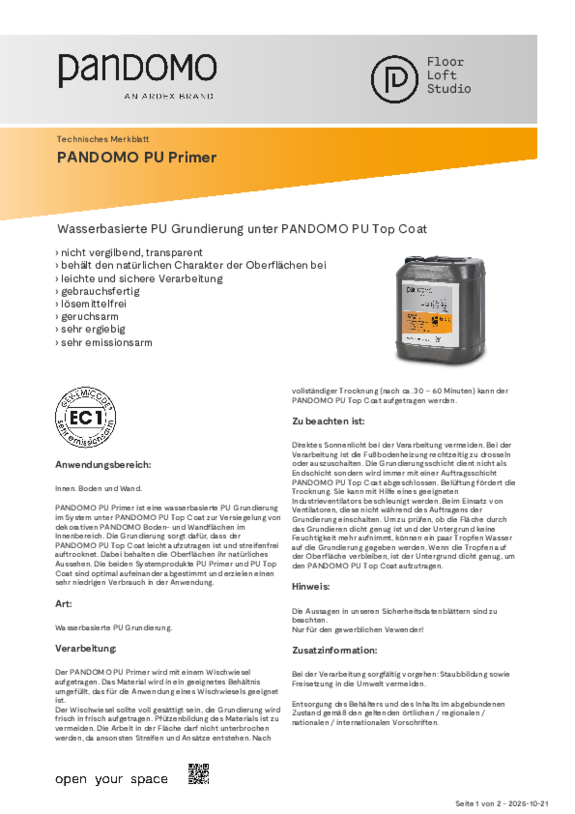 PANDOMO ist eine internationale Designmarke aus Deutschland. Die Marke ist zum Synonym für fugenlos gespachtelte, minimalistische Betonböden geworden. Unser Angebot entwickelt sich jedoch ständig weiter, z.B. mit dem natürlichen Kalk-Lehmputz PANDOMO Clay oder dem lebendigen PANDOMO Terrazzo. Entdecken Sie die Vielfalt unserer individuellen Premium-Designoberflächen.