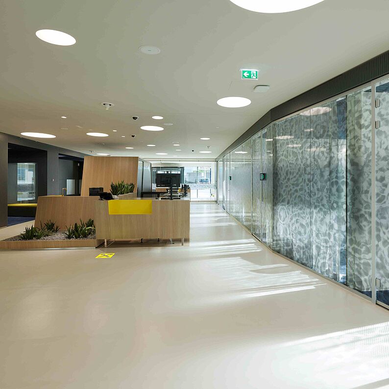 Das „haus salzkammergut“ macht Begegnung erlebbar und stellt den Menschen für soziale Interaktion in den Mittelpunkt. Eine gelungenen Symbiose von modernem Arbeitsplatz und viel Raum. 280m2 PANDOMO Floor bieten eine angenehme Atmosphäre. Ausgeführt von der Firma Drack Maler und Bodenleger GmbH