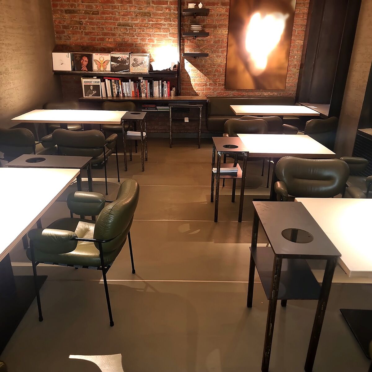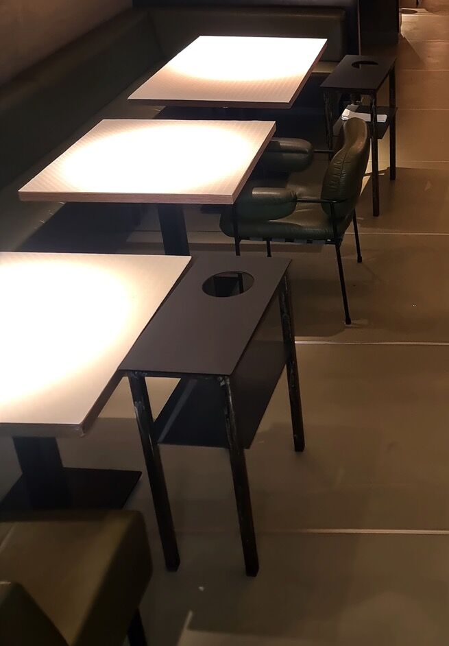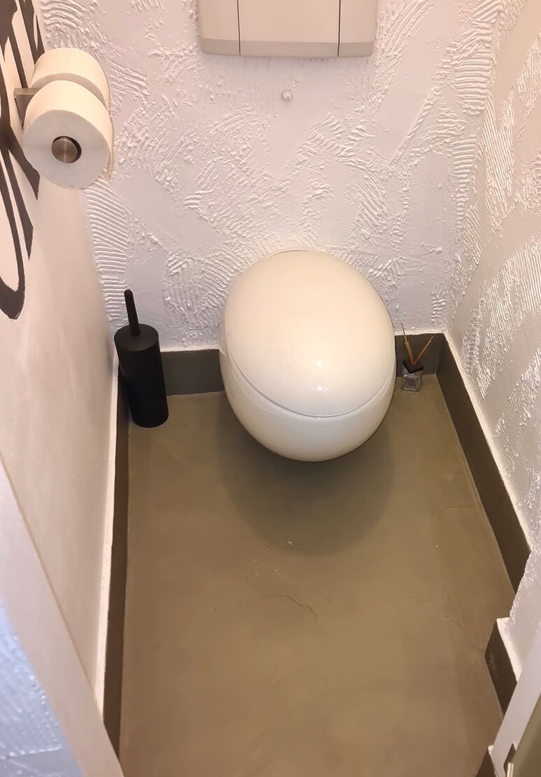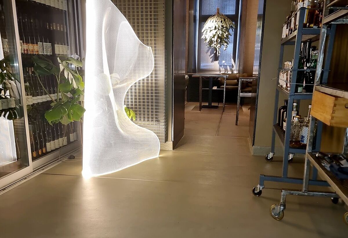 Mit den flächenbündig eingespachtelten Edelstahlprofilen spiegelt sich auch hier die Kreativität der Gaststätte wider.