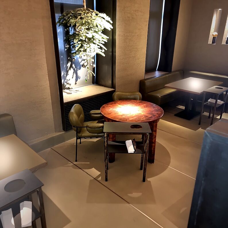Auf höchstem Niveau wurde de Restaurantbereich und die Sanitäranlagen mit PANDOMO Studio ausgestattet.
