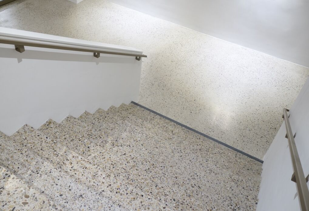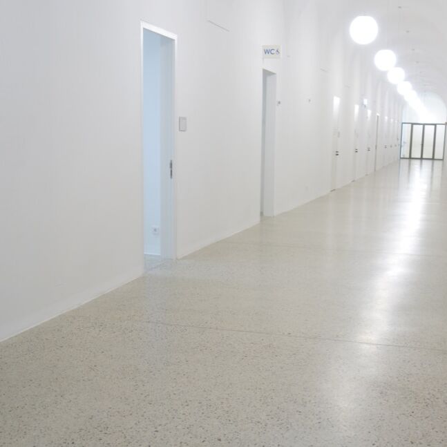Die Gebäude am Dr. Ignaz Seipel-Platz 2 und in der Postgasse 7-9 wurden umfassend renoviert und im Zuge dessen kam vor allem im Gebäudekomplex der Postgasse 7-9 unser panDOMO TerrazzoBasic bei Gangflächen, Büros und Stiegenhaus zur Anwendung.