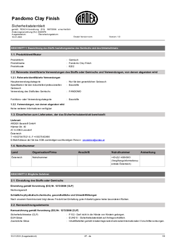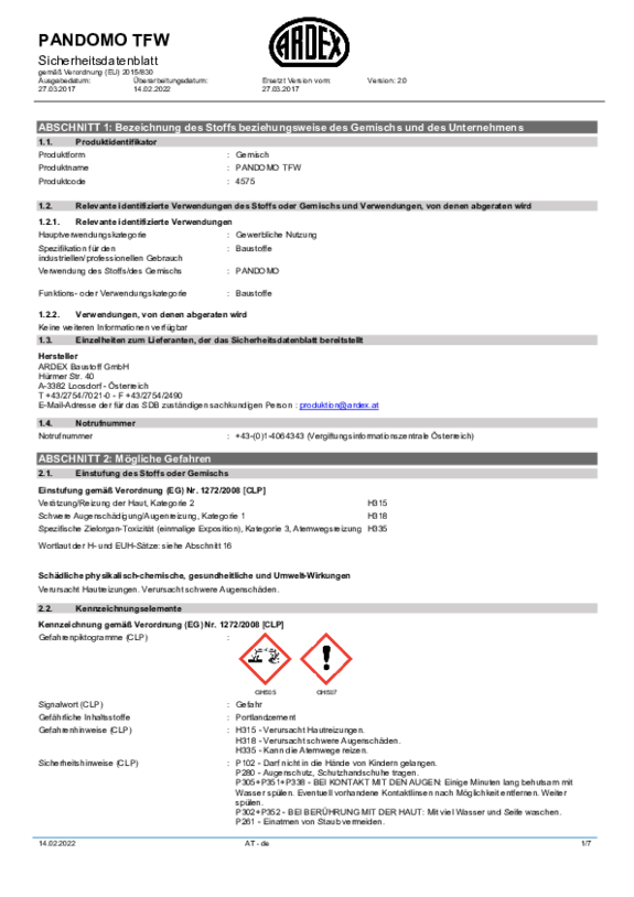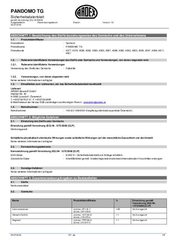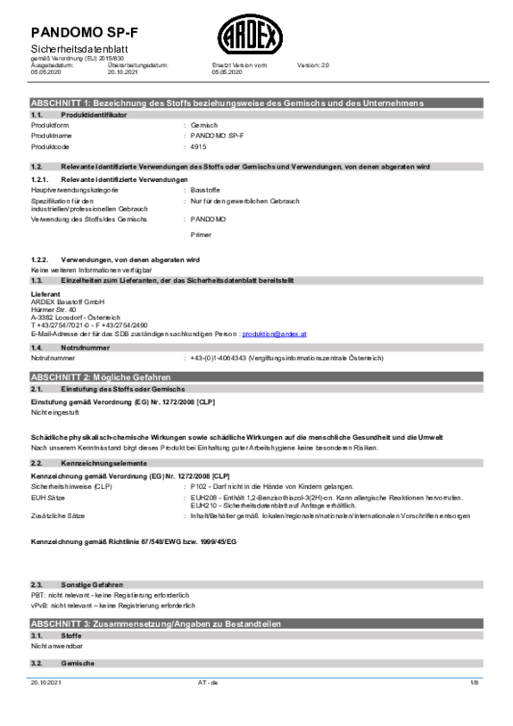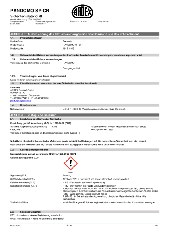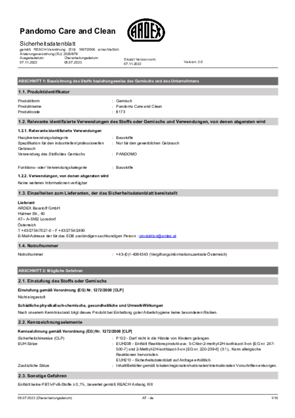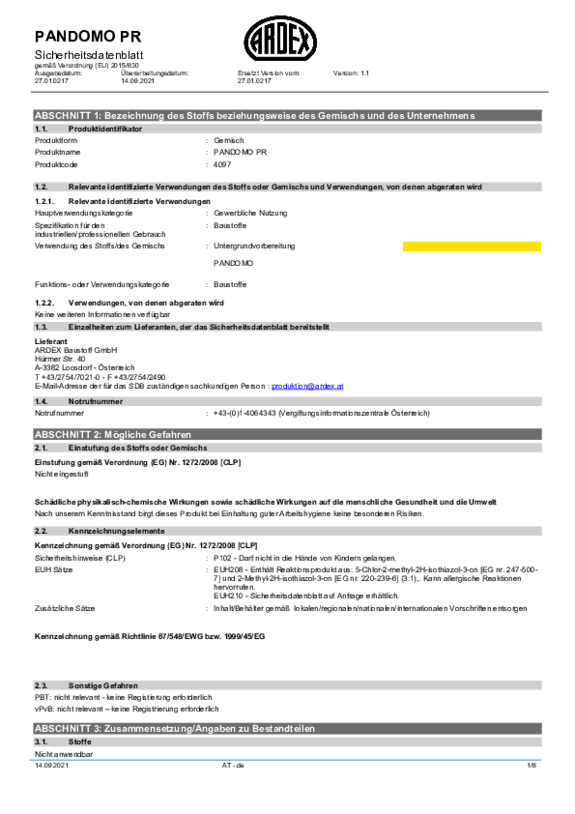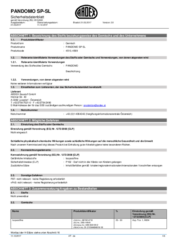 Finden Sie hier alle Sicherheitsdatenblätter zu unseren PANDOMO Produkten.