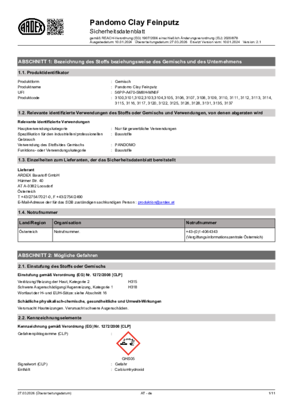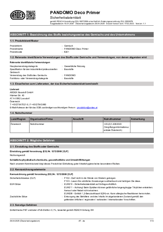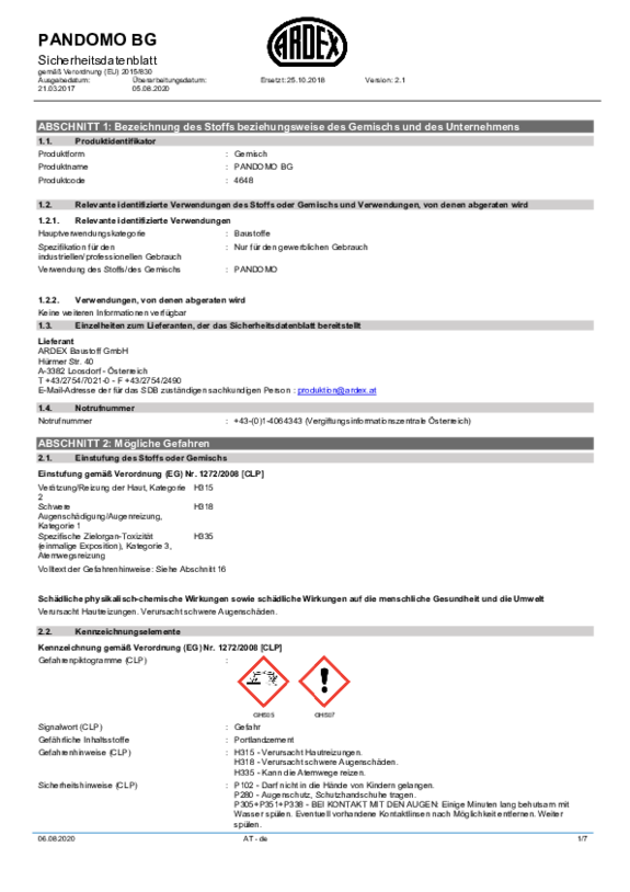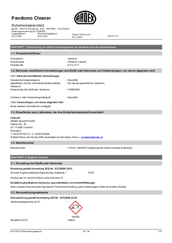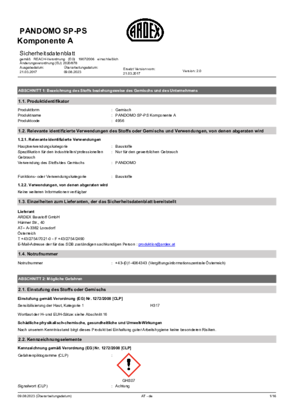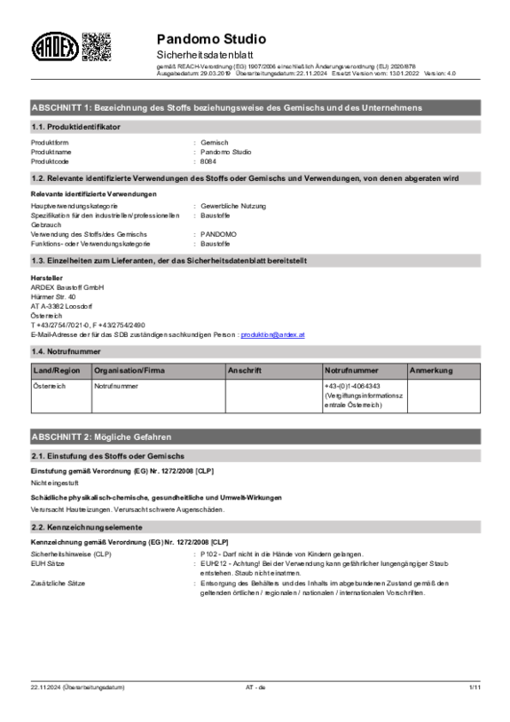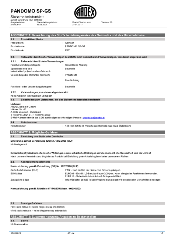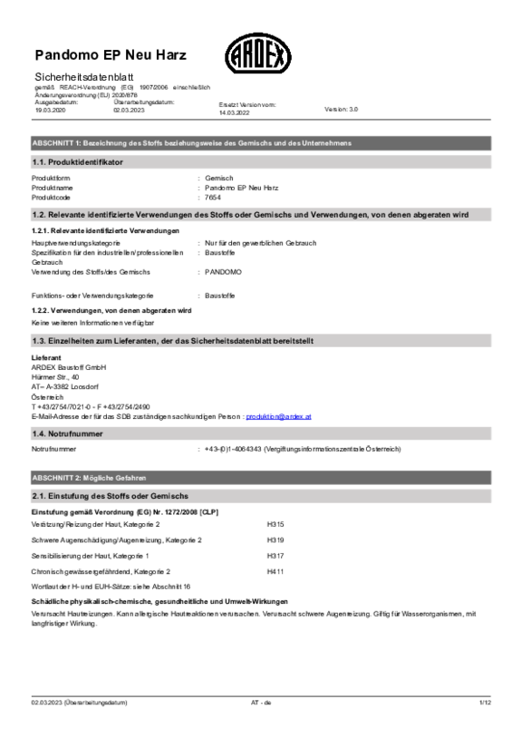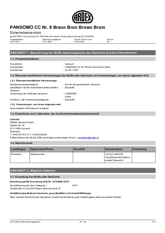 Finden Sie hier alle Sicherheitsdatenblätter zu unseren PANDOMO Produkten.