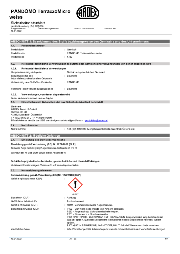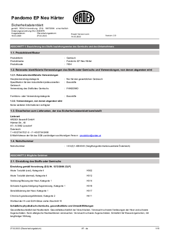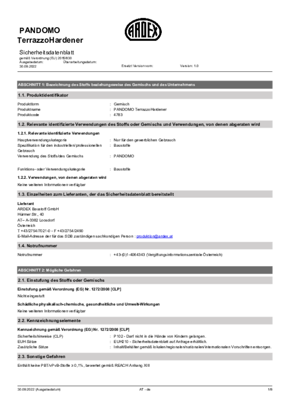 Datenblatt PANDOMO Terrazzo Hardener AT