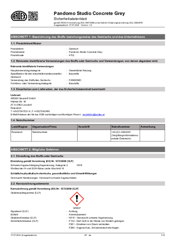 Datenblatt PANDOMO Studio Concrete Grey AT