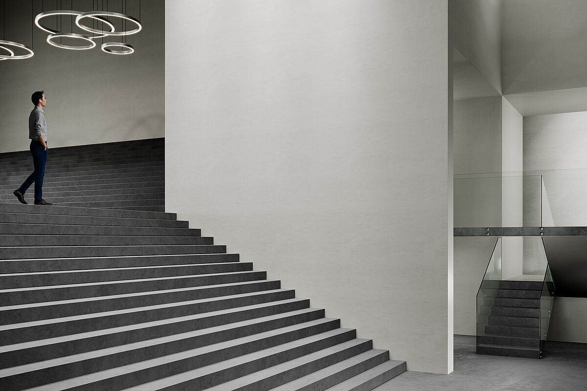 Auch für öffentliche und gewerblich genutzte Räume ist PANDOMO Loft mit seiner spannenden Oberflächentextur eine optimale Lösung.
